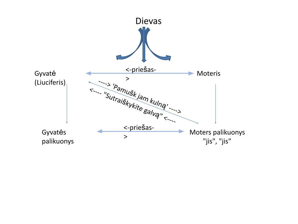Aš sukelsiu priešiškumą tarp tavęs ir moters, tarp tavo palikuonių ir jos palikuonių; jis kirs tau per galvą, o tu kirsi jam į kulną“.